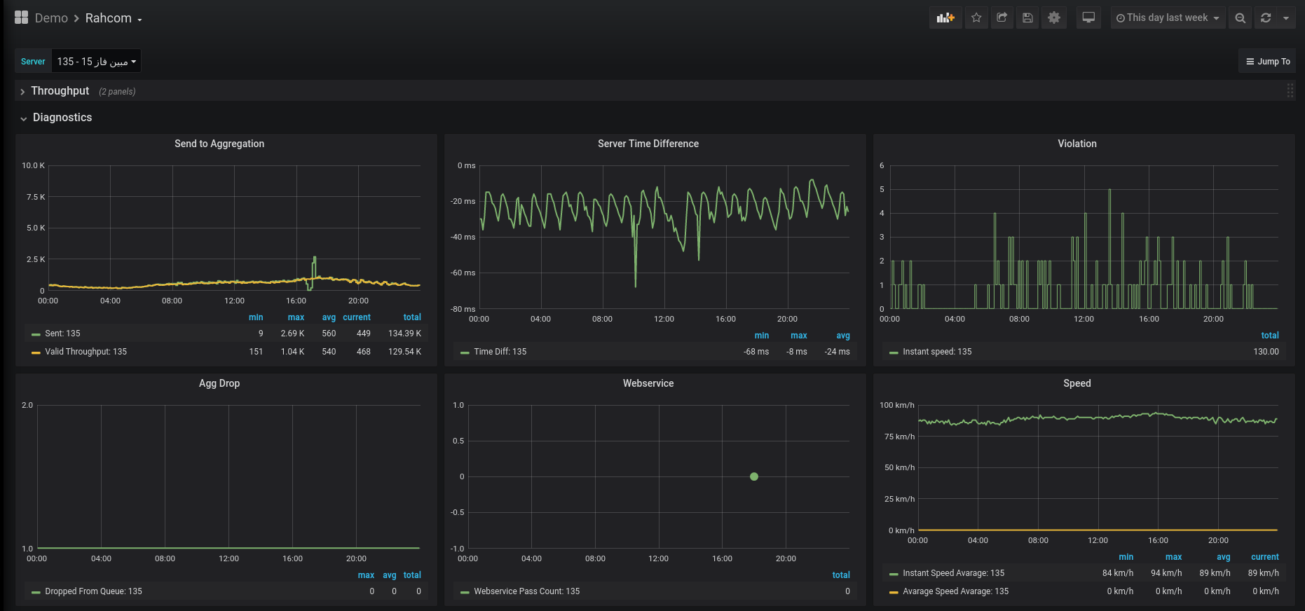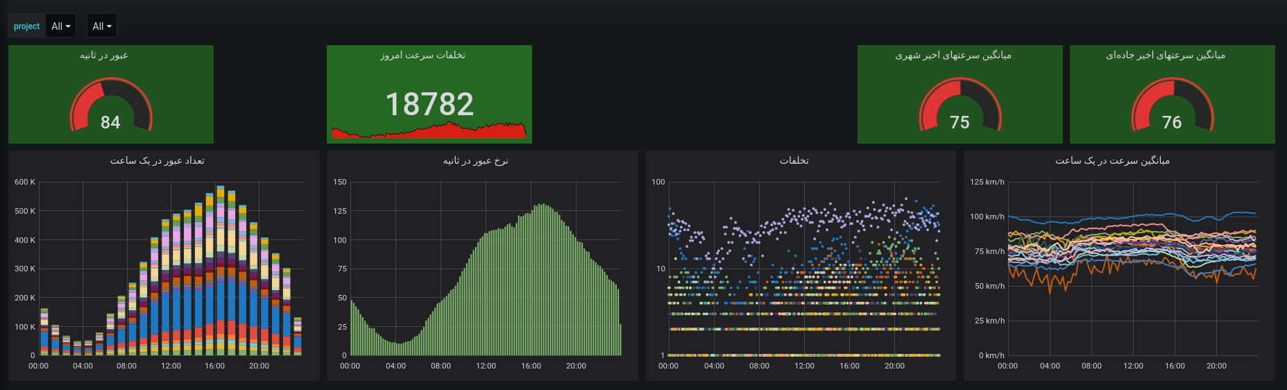 نرمافزارهای مرکز که وظیفه اعمال تنظیمات نقاط، دریافت اطلاعات ثبت تخلف و تردد، همگام سازی سامانهها و محاسبه سرعت متوسط و ارسال اطلاعات به مرکزهای مورد نظر را بر عهده دارند پارامترهای متعددی از تروپوت دریافت رکوردها و صف ارسال گرفته تا وضعیت سلامت پایگاه داده و دادههای امنیتی همچون لاگینهای صورت گرفته روی سرور را جمعآوری کرده به این پلتفورم ارسال میکند.