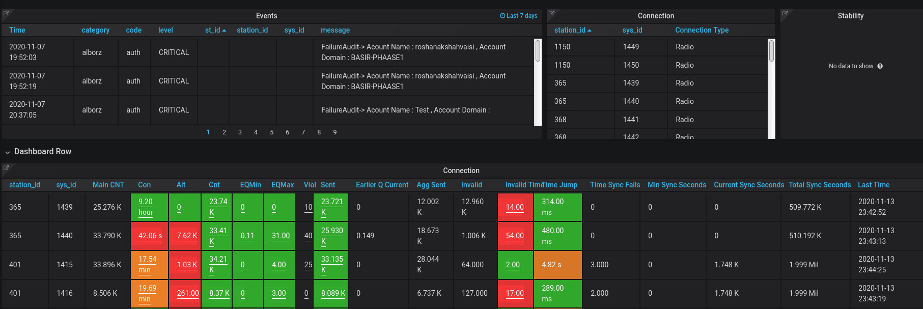 تمامی پارامترهای جمعآوری شده از سنسورها و نرم افزارها که تعداد آنها نزدیک به ۱۷۰۰ مشخصه است در بازههای زمانی کوتاه ۳ دقیقهای از بیش از ۱۵۰۰ دوربین در سطح کشور در این پلتفورم دریافت شده و در یک پایگاه داده دنباله زمانی (Time Series) ذخیره میگردد. این پایگاه داده تمام اطلاعات را برای دسترسی سریع به مدت سه ماه نگهداری کرده و پس از آن به صورت خودکار خلاصهای از اطلاعات را برای مراجعات بعدی به مدت سه سال نگهداری میکند. تیم توسعه از یک نرمافزار متن باز تحت وب برای نمایش دادههای آماری استفاده کرده و همچنین با استفاده از موتور تحلیل دادههای رشتهای و توسعه الگوریتمهای مورد نیاز اقدام به شناسایی آنومالیها و ارسال هشدار میکند.